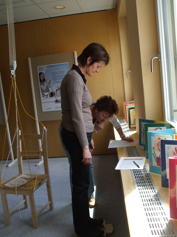Experiment "Sesselflaschenzug" - die Arbeitsanweisung wird studiert